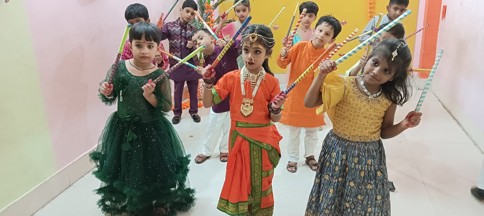 Our adorable Kindergarten and primary students brought the festive spirit alive with a vibrant Dandiya dance to celebrate Navratri! Dressed in colorful traditional attire, the little ones filled the air with joy and excitement as they danced to the beats of celebration. It was a heartwarming sight to see them embrace our culture and traditions with such enthusiasm.